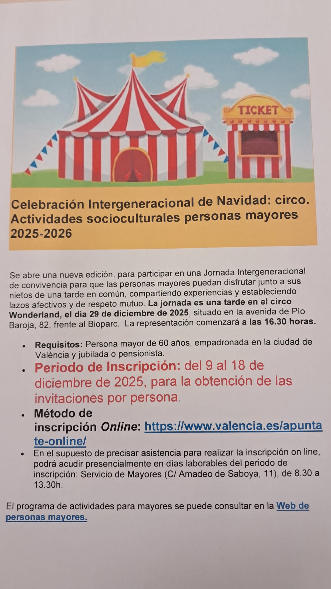 DEL 13 AL 30 DE ENERO DE 2026, LOS MARTES, MIÉRCOLES Y JUEVES DE 11 A 12,30 HORAS.