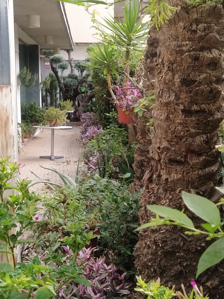 Jardín Exterior: Zona verde del centro que rodea el edificio. Un extenso número de macetas, plantas y árboles cuidados con suma dedicación por socios del centro y que cualquier persona puede disfrutar. ¡Nuestro pequeño pulmón particular!