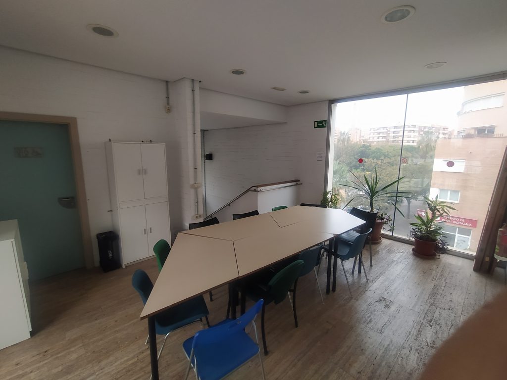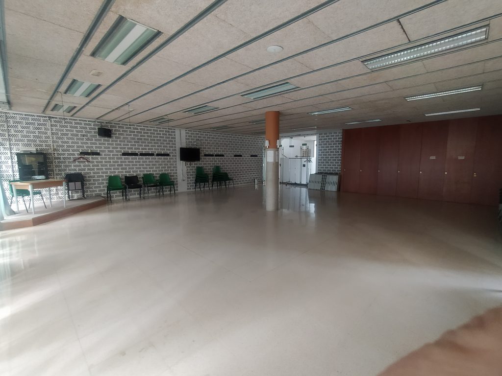 Sala Multiusos: Habitación grande y diáfana que se utiliza, como su nombre indica, para múltiples usos. En ella se organizan Charlas, Exposiciones, Bailes, clases de Gimnasia, Yoga, Pilates, Relajación, Teatro, Baile en línea, etc.