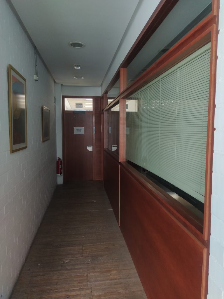 Vestíbulo : Entrada al edificio con mesa de recepción e información y noticias en los TABLONES DE ANUNCIOS que se encuentran a simple vista.