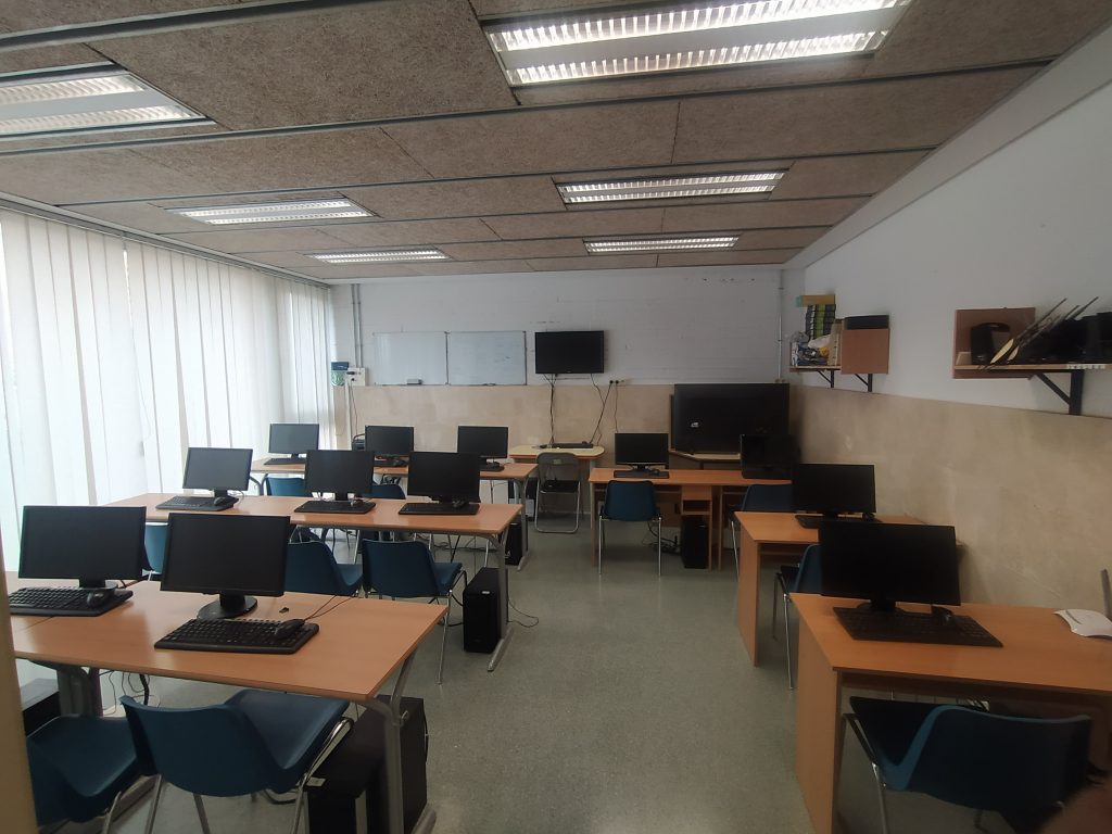 Aula Polivalente 1 o de Informática: Perfectamente equipada con múltiples ordenadores y elementos informáticos y audiovisuales para las clases de Informática y a veces de Idiomas.