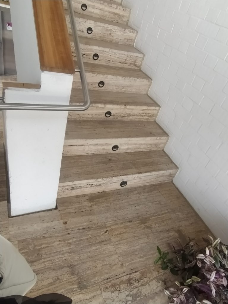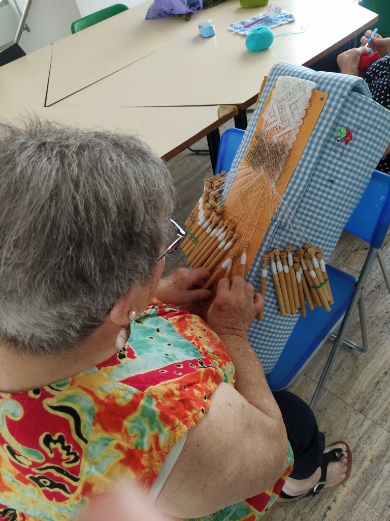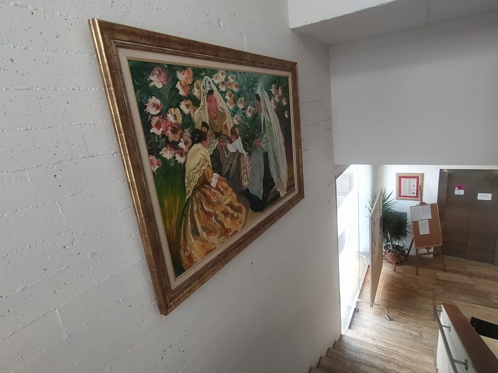 Hall 2º piso: Antesala del aula de Manualidades. Por gusto o comodidad se utiliza para dar más extensión y soltura en las manipulaciones de los trabajos manuales de los participantes cuando es necesario.