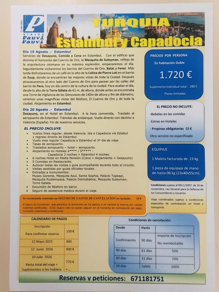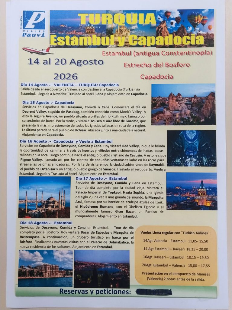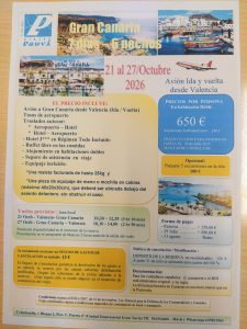 PARA EL RESTO DE VIAJES Y EXCURSIONES SE IRÁ INFORMANDO PUNTUALMENTE EN NUESTRA WEB Y ADEMÁS HABRÁ CARTELES INFORMATIVOS EN LOS TABLONES DEL CENTRO. CON EL FIN DE OBTENER UNA MAYOR INFORMACION DE LOS MISMOS SE ACONSEJA PASAR POR EL DESPACHO DE VIAJES DONDE SE LES INFORMARÁ DE TODA LA AMPLIA GAMA DE VIAJES QUE ESTE CENTRO REALIZA DURANTE TODOS LOS MESES DEL AÑO, CON DURACIONES DE UN DIA, FINES DE SEMANA O DE VARIOS DIAS.